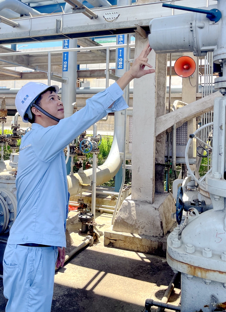 2024年是碼頭和庫(kù)區(qū)的重要?dú)v史節(jié)點(diǎn),何雄勝同志以“全天候”“無(wú)休息”的戰(zhàn)斗姿態(tài)沖鋒在前。油氣回收系統(tǒng)投用前,他連續(xù)堅(jiān)守崗位,精準(zhǔn)指導(dǎo)水沖洗、吹掃、氣密等關(guān)鍵工序,細(xì)致核查涉及液氮深冷工序等危險(xiǎn)工藝的300余個(gè)法蘭點(diǎn)!把b置運(yùn)行不容疏忽,必須把安全放在首位!”這是他堅(jiān)守的信念。正是這份黨員的極致嚴(yán)謹(jǐn),確保了裝置一次性成功聯(lián)調(diào),運(yùn)行指標(biāo)符合設(shè)計(jì)規(guī)范。他還指導(dǎo)用分析儀等設(shè)備精確測(cè)試不同工況能耗,為節(jié)能降耗打下了堅(jiān)實(shí)基礎(chǔ)。面對(duì)首次卸船、裝船、茂石化長(zhǎng)輸管線進(jìn)罐等多項(xiàng)艱巨任務(wù)的圓滿完成,油污滿面也難掩他臉上的欣慰:“這就是黨員應(yīng)有的‘進(jìn)度條’!”