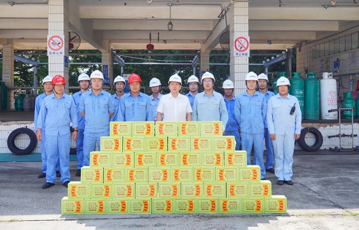 慰問中,馬云青與大家親切交流,關(guān)切詢問工作生活情況,再三叮囑大家在高溫天氣下要合理安排作業(yè)時(shí)間,做好防暑降溫,確保自身健康安全。