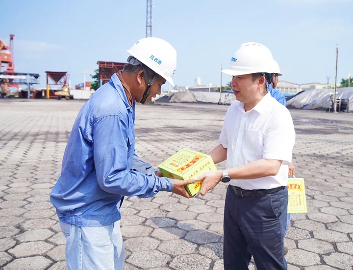 近日,茂名港集團(tuán)工會(huì)主席馬云青率隊(duì)開展“送清涼”慰問活動(dòng)。慰問組先后走訪了集團(tuán)港區(qū)生活區(qū)、中油王港公司庫(kù)區(qū)、港口經(jīng)營(yíng)公司碼頭作業(yè)現(xiàn)場(chǎng)、中機(jī)科技公司生產(chǎn)現(xiàn)場(chǎng)等地,為高溫下堅(jiān)守崗位的一線操作職工、重點(diǎn)項(xiàng)目職工等送去清涼與關(guān)懷。集團(tuán)副總裁李昱祺及相關(guān)下屬企業(yè)負(fù)責(zé)人參加活動(dòng)。